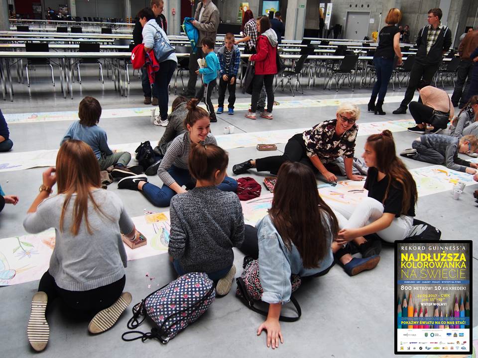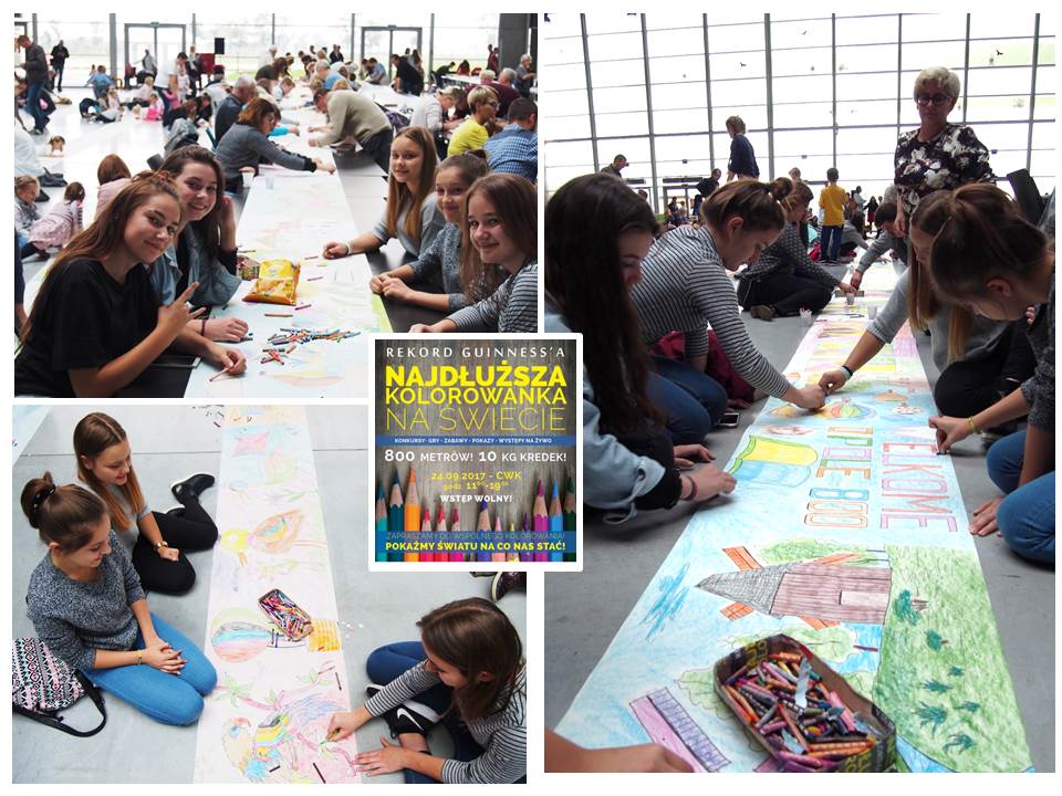 Dnia 24.09.2017 roku reprezentacja Gimnajzum w składzie: Ola Kowalska, Martyna Kandora, Martha Gabrisch, Paulina Sznajder i Karolina Ptasznik wraz z panią Ireną Niewęgłowską, pedagog szkolnym, złapały za kredki i pod dachem Centrum Wystawienniczo-Kongresowego w Opolu zabrały się za kolorowanie ręcznie stworzonych obrazków rozciągniętych na długości ponad 800 metrów. Udało się, pokolorowanych zostało dokładnie 820 metrów i 30 centymetrów!